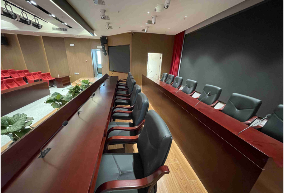 陜西渭南會(huì)議中心經(jīng)常舉辦各類大型會(huì)議,會(huì)議頻繁召開,對(duì)會(huì)議設(shè)備提出了更高的要求。HUAIN華音根據(jù)大型階梯報(bào)告廳和小型會(huì)議室的使用需求,選擇全數(shù)字嵌入式會(huì)議系統(tǒng)進(jìn)行搭建使用。全數(shù)字嵌入式會(huì)議單元HY-6120系列根據(jù)桌面尺寸量身定制,全鋁合金面板內(nèi)嵌觸控亞克力面板,具備防水防塵功能;支持?jǐn)?shù)量限制、先進(jìn)先出、后進(jìn)先出、主席允許、自由討論五種會(huì)議模式;拾音有效距離可達(dá)50-60cm,信號(hào)穩(wěn)定,發(fā)言無噪音電流影響。