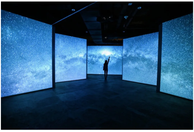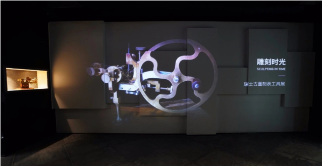 其中“五聯屏時空穿越廳”,展現穿梭時空的震撼,引出時間的產生與意義。通過上下三臺CB-L1060投影鐘表的鏈條,展示飛亞達表的文化和歷史。利用佳能投影機獨有的自帶0.54:1的鏡頭,通過有限的空間,展示出大畫面和細膩的圖像,還原飛亞達的鐘表歷史,詮釋出歷史與未來的演變。