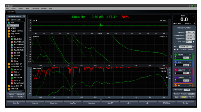 但是大多數音響人還有更高的要求,SmaartLive 是一套雙信道,采用 FFT 數學運算轉換為基礎的測量軟件,它可以實時分析聲場頻譜設備,或是聲音檔案的相位、時間響應等工具,也可遙控調整有支持軟件的音箱處理器,算是在數字軟件儀表里,屬于性價比高又準確性高的軟件。