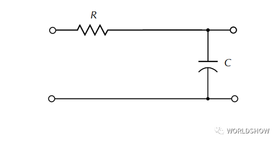 模型驗證:在AP515測試儀中,將輸出端阻抗設置為為100Ω,輸入端阻抗設置為200 kΩ,用一條長度為0.5m的信號線連接輸入和輸出。在卡儂公頭的2腳和3腳之間并聯入一個33nF的電容,這個電容量接近于常見話筒線在距離達到400米后的線間電容的中間值,用于模擬長距離傳輸時的可能存在的線間電容。在如此短的線材中,我們可以忽略線材本身的電阻和電感。傳輸電路的模型可簡化為: