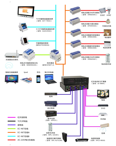 由若干個(gè)EC-NET總線A電箱,總控室EC-NET總線B,及主機(jī)、網(wǎng)關(guān)的系統(tǒng)模塊構(gòu)成。