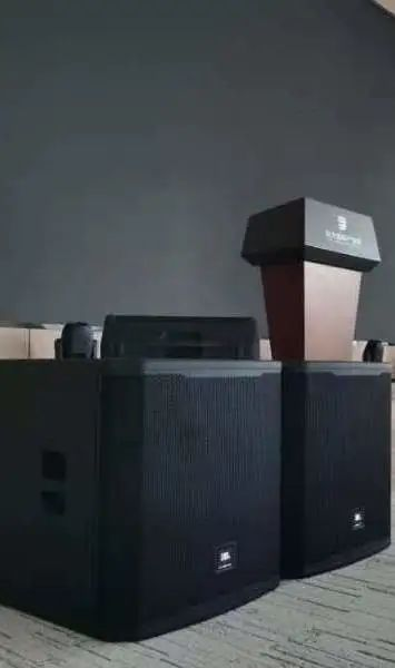 廳內(nèi)主擴(kuò)采用8只美國(guó)JBL Professional SRX910LA新一代巡演級(jí)線陣列揚(yáng)聲器,搭配新一代智能有源超低PRX918XLFW,舞臺(tái)返送采用PRX912雙分頻揚(yáng)聲器,共同打造極致的聲音體驗(yàn)。PHONIC ACUMEN 6A高保真監(jiān)聽音箱提供高質(zhì)量的音頻監(jiān)控。