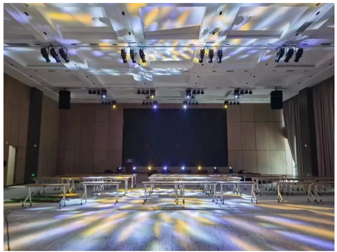 燈光系統(tǒng)選用DLW筑夢(mèng)燈光 DLW 400 BSW三合一電腦燈、DLW 354C4 PAR LED染色燈、DREAM 200PL IMAG定焦成像燈、DREAM 200 WSL LED成像燈,并與音響系統(tǒng)聯(lián)動(dòng),共同打造集聲光電為一體的多功能宴會(huì)廳。