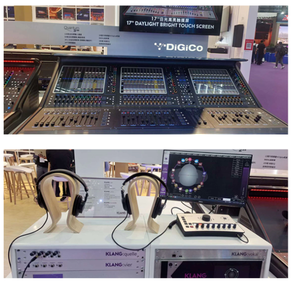 音王電聲股份有限公司攜旗下品牌cadac開辟出一個沉浸聲展區,為大家呈現聲、光、影融合的場景體驗。展出沉浸聲處理器(通用CP系列)、創新型可調線陣列指向性數字調音臺( CM-J50 )、新一代全FPGA架構數字調音臺(CDC-32)、AI智能調音師:自適應聲場處理器(AF48)、Tegatran“鈦船”音頻插件平臺(TT8)在內的五大產品,以及多種沉浸聲應用解決方案實景體驗區;另外還有音王旗下品牌英國Studiomaster全系列產品展示區。