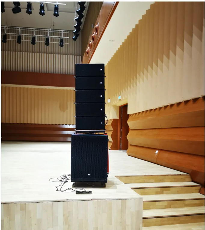 島”音樂廳音響系統(tǒng)采自意大利進(jìn)口品牌RCF音響,HDL有源線陣列系統(tǒng),舞臺返聽為兩組ART300有源系列音箱。